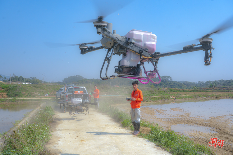 人勤春来早,田间农事忙。在潮州市饶平县樟溪镇四罗村的果蔬生产基地里,高速插秧机在田间穿梭自如,所过之处留下一簇簇青翠的秧苗;远处,载重量达70公斤的植保无人机呼啸升空后,在稻田上方来回盘旋进行撒播作业;另一边,“美香占2号”“南晶香占”“普薯32号”等优良品种集中亮相,种植户正在了解品种引进、种植的细节,咨询农业机械报废更新补贴政策……