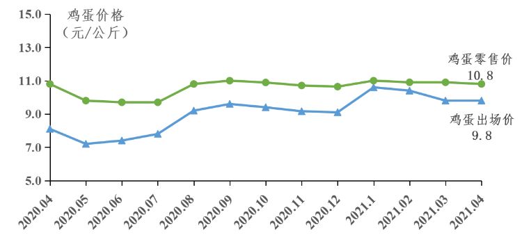 蛋价平稳。4月我省鸡蛋价格走势保持平稳。据省农业信息监测体系数据,本月我省自产鸡蛋出场价为9.8元/公斤,环比持平;据地市“菜篮子”价格数据,鸡蛋零售价格为10.8元/公斤,环比下降0.9%。