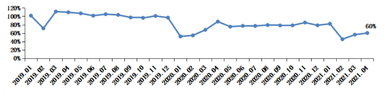 4月大米需求增加,省外入场量和总成交量较上月均增加。据省农业信息监测体系数据,4月大米省外入场量环比增长7%,同比下降31.1%;总成交量环比微增0.8%,同比下降32.2%。4月大米省外入场量定基指数为60%,与上月相比上升4个百分点;总成交量定基指数为60%,与上月持平。