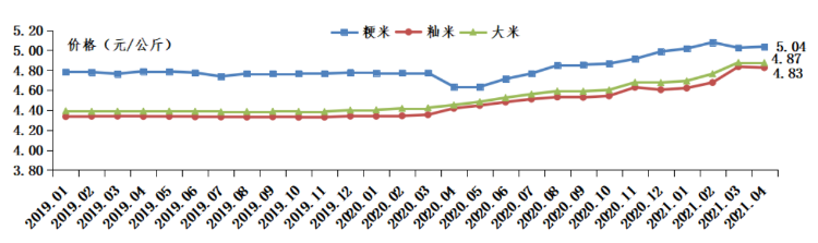 本省成品粮市场价下跌。据基点县监测数据,4月早籼稻市场价环比持平,同比上涨1.6%,晚籼稻市场价环比微跌0.4%,同比下跌1.9%。成品粮市场价环比下跌,其中早籼米和晚籼米环比分别下跌2.2%和2%,同比分别下跌2.3%和1.6%。