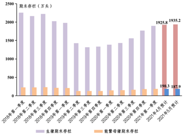 生猪、能繁母猪期末存栏量图