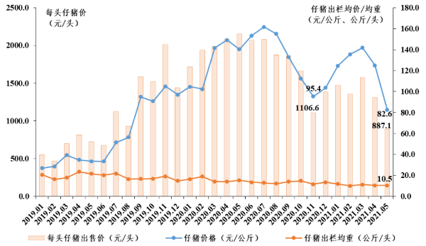 仔猪出售价格、出栏均重走势图