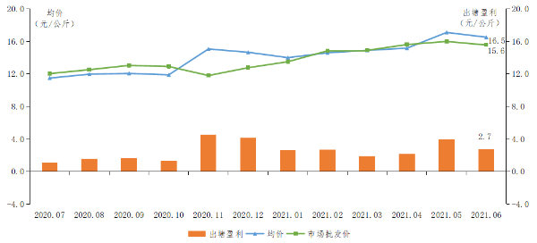 草鱼出塘量减少。受省内新冠肺炎疫情局部反弹影响,草鱼出塘进度放缓,导致我省草鱼出塘量减少。据省农业信息监测体系数据,6月我省菜篮子基地草鱼出塘量环比减少24.8%,出塘量定基指数为14.5%,较5月减少4.8个百分点。