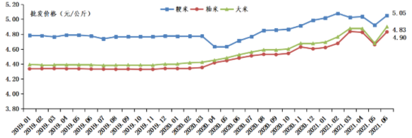 省内主要批发市场大米批发价上涨。据省农业信息监测体系数据,上半年大米批发均价4.8元/公斤,同比上涨8.1%。其中籼米批发均价4.36元/公斤,同比上涨8.4%;粳米批发均价5.04元/公斤,同比上涨7.9%。