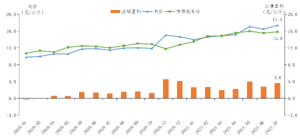 南美白对虾出塘均价上涨。7月60条/公斤的南美白对虾出塘均价为54.6元/公斤,环比上涨3.7%,出塘成本为31.4元/公斤,环比上涨4.3%,出塘盈利为23.2元/公斤,环比上涨2.9%。