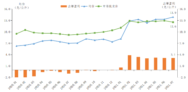 草鱼出塘量增加。新冠肺炎疫情反弹带来的影响逐渐消退,水车运输恢复通畅,加之本月草鱼塘头行情利好,基地适时出塘,带动草鱼出塘量增加。据省农业信息监测体系数据,7月我省菜篮子基地草鱼出塘量环比增加73.5%,出塘量定基指数为25.2%,较6月增加10.7个百分点。