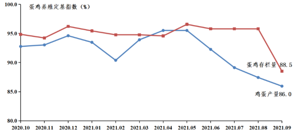 蛋鸡存栏量和鸡蛋产量定基指数走势图