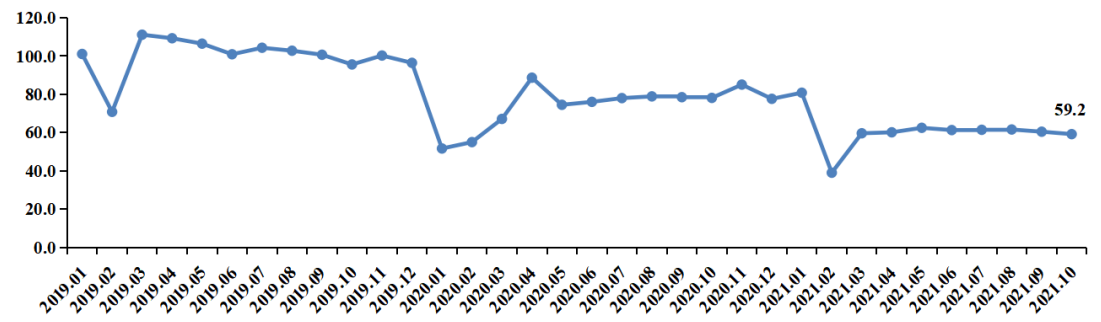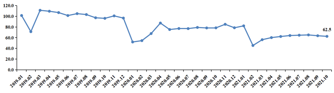10月我省粮食消费需求总体平稳,批发市场入场量和总成交量小幅下降。据省农业信息监测体系数据,大米省外入场量环比下降1.8%,定基指数为62.5,较9月下降1.8。总交易量环比下降2.1%,定基指数为59.2,较9月下降2.1。