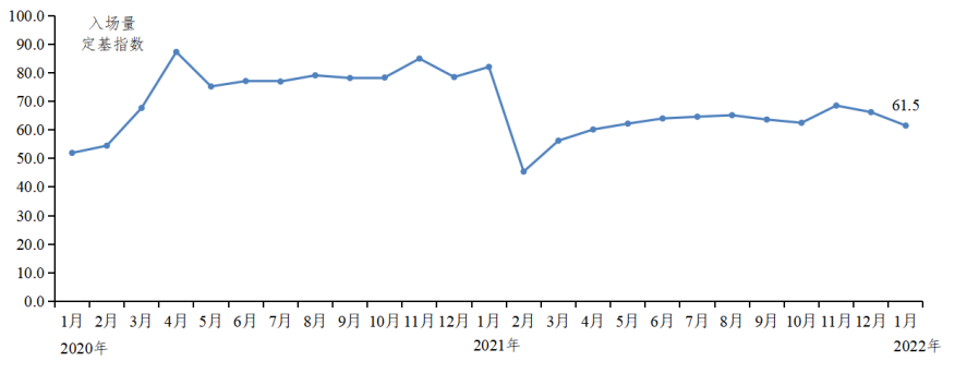 1月恰逢春运,部分经销商休市,批发市场大米购销积极性下降,大米入场量和成交量均环比减少。据省农业信息监测体系数据,1月大米入场量环比减少7.1%,同比减少22.8%;大米成交量环比减少7.0%,同比减少20.7%。1月大米入场量定基指数为61.5,较上月减少4.7;大米交易量定基指数为58.8,较上月减少4.4。