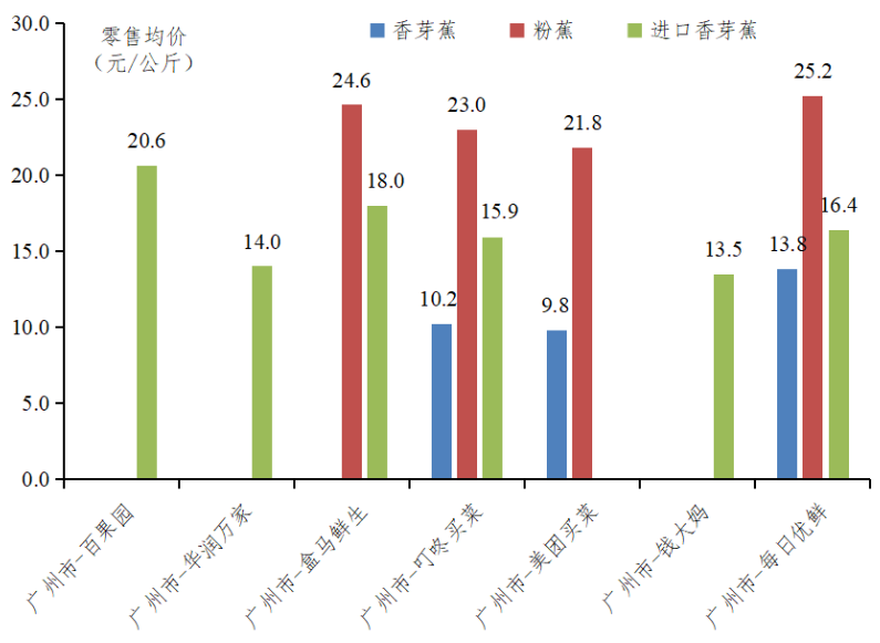 香蕉零售价格上涨。春节带动消费热潮,香蕉零售价格持续攀升。据省农业信息监测体系数据,主要零售平台香芽蕉、粉蕉、进口香芽蕉零售均价分别为11.3元/公斤、23.7元/公斤、16.4元/公斤;环比分别上涨8.5%、6.5%、7.5%。