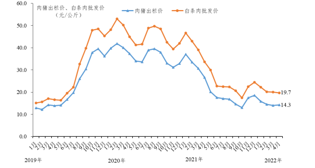 肉猪出栏均价上涨。5月1日起省外生猪调运将进一步收紧,养殖户普遍看涨预期,猪价震荡上涨。据省农业信息监测体系数据,肉猪出栏均价涨至14.3元/公斤,环比上涨2.1%,同比下降46.4%。供港澳地区肉猪出栏均价为15.9元/公斤,环比上涨4.0%。