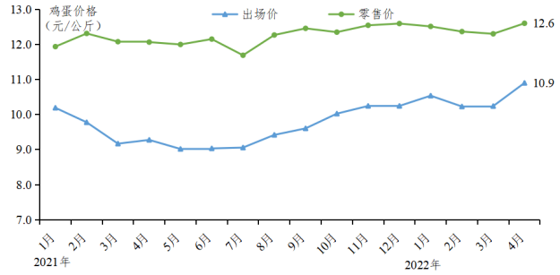 蛋价总体上涨。在全国市场价格上涨的背景下,蛋价总体上涨。鸡蛋出场价为10.9元/公斤,环比上涨6.9%;市场批发价10.6元/公斤,环比上涨5%。据地市“菜篮子”价格数据,鸡蛋零售价为12.6元/公斤,环比上涨2.4%。
