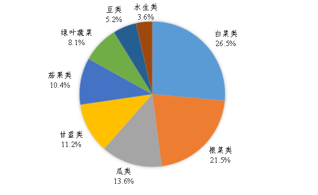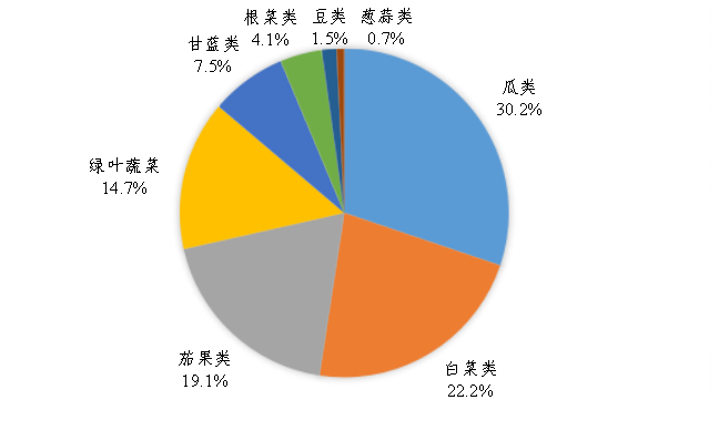 蔬菜产量减少。台风、降雨、高温等因素共同影响下,预计8月我省蔬菜总产量约303.6万吨,环比下降0.8%。与上月相比,绿叶蔬菜和茄果类蔬菜产量明显减少。监测的规模基地瓜类蔬菜产量排第一,产量占比30.2%;其次,白菜类产量占比22.2%;茄果类产量占比19.1%。产量排名前三品种是菜心、苦瓜和茄子,占比分别是12.6%、8.4%和8.1%。