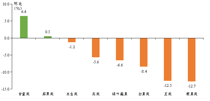 监测的主要批发市场8月交易量增加的是甘蓝类和茄果类,环比分别增长6.4%和0.5%。交易量明显减少的是根菜类和豆类,环比下降幅度均在10%以上,分品种而言,胡萝卜、油麦菜和空心菜交易量环比下降幅度较大。