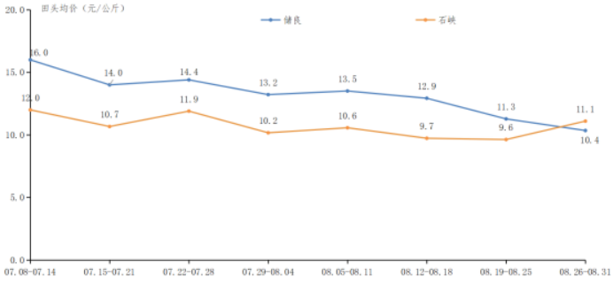 粤西主产区龙眼基本上市完毕,粤东和珠三角产区着龙眼批量上市,价格行情有所回落。据农业信息监测体系数据,本月储良和石硖田头均价分别为12.4元/公斤和10.1元/公斤,环比下降15.6%和12.9%。