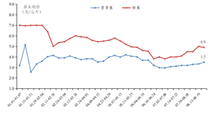 三、香蕉:新季香蕉略有下降,行情低位回升