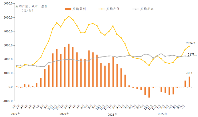 肉猪、种猪、仔猪出栏均有盈利。8月肉猪养殖成本17.8元/公斤,环比下降3.7%,规模化基地盈利增长,肉猪出栏头均盈利745.1元/头,种猪头均盈利236.5元/头,仔猪头均盈利350.4元/头。