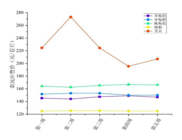 总体来看,我省8月份各周之间早籼稻、中籼稻、晚籼稻和粳稻等粮食的农民出售价和市场价格保持稳定,周间的价格环比变化低于2%。受谷物进口继续增加以及国际玉米价格下行,以及国内主产区持粮主体出货情绪较强,饲料及深加工企业采购意愿不高,市场替代品多样化等多重因素影响,8月玉米的农民出售价和市场价格出现小幅波动。