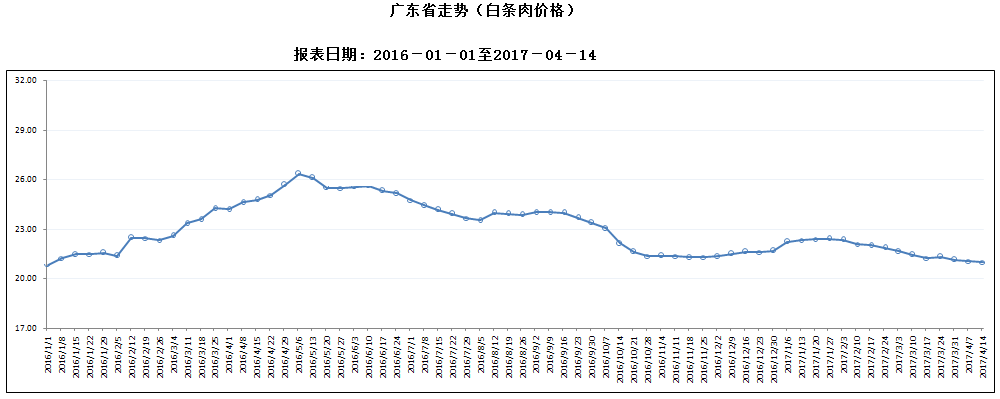 白条肉平均出厂价格为20.98元/公斤,较前一周下降0.29%,较去年同期下降15.23%。本周较上周环比降幅较大的地区有湛江市1.82%,佛山市1.70%,肇庆市1.36%,但仍有5个市呈上涨态势,其中珠海、清远和梅州涨幅均超过1%。(畜禽屠宰管理处)