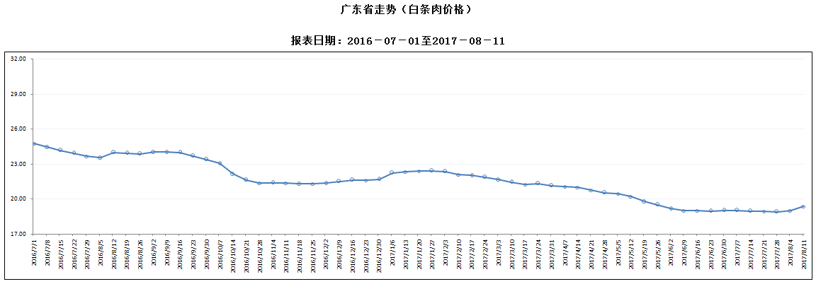 广东省屠宰生猪及肉品价格周报(2017年第32周)