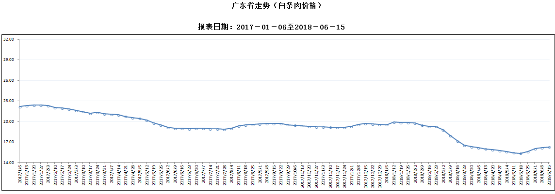 广东省屠宰生猪及肉品价格周报(2018年第24周)生猪及猪肉价格环比上涨、同比下降
