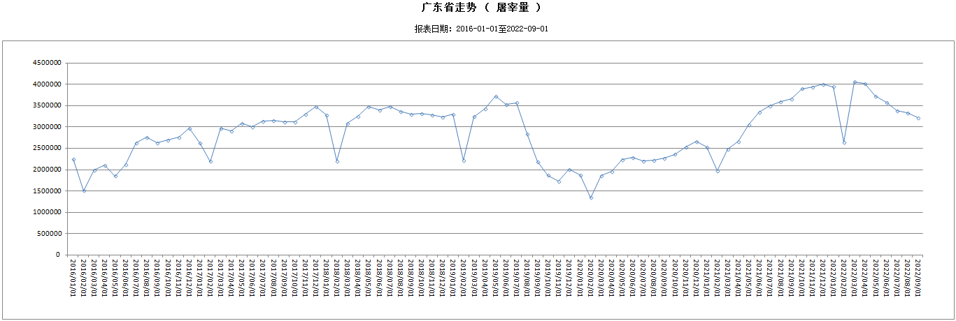 2022年9月份广东省屠宰生猪及肉品供应情况