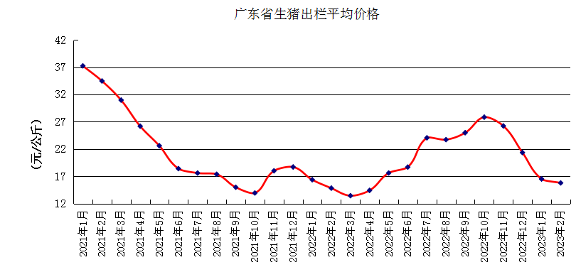 广东省生猪出栏平均价格走势图。