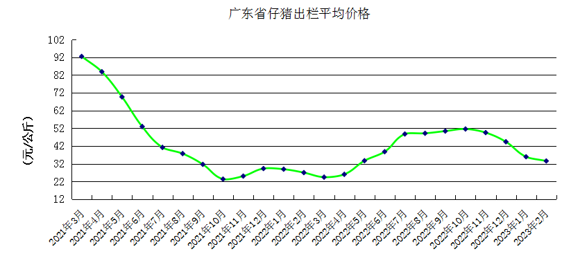 广东省仔猪出栏平均价格走势图。