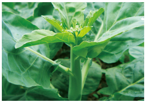 特征特性 : 全生育期为 160 ~ 170 天,播种至初收为45 ~ 51 天。生长势较强,株型直立,株高 36 cm,开展度 34cm,叶片椭圆形,肥厚微皱,浅绿色,腊粉少,茎圆粗壮均匀,节间中长,纤维少,品质优,可食部位鲜嫩,爽甜可口。菜薹长 17 ~ 20cm,薹茎粗 2.0 ~ 2.5cm,单薹质量 110 ~ 150 g,播种至初收 45 ~ 51 天,每 667m2 产量 1200 ~ 1600kg。感观品质优;经农业部蔬菜水果品质监督检验测试中心(广州)检测,其中可溶性固形物为 6.73%,还原糖 1.42%,维生素 C1.29mg.g- 1 ,粗蛋白 2.7%,粗纤维 0.64%。夏翠芥蓝在适播期内表现较好的适应性及抗性,其耐热性、耐涝性强;抗霜霉病、炭疽病、软腐病。