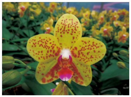 1、生物学特性 :‘九美蝴蝶兰’ 组培苗移栽于口径 1.5 寸透明营养杯,4-5 个月后,株幅达 12cm 左右时进行第 1 次换盆,用 2.5 寸杯种植;再过 4-5 个月,株幅达 18cm 以上时用 3.5 寸杯换盆种植;又经 6-7 个月的栽培管理进入成苗,可进行促成栽培。平地温室中栽培,5-11 月为营养生长期,11 月中旬抽出花芽,进入生殖生长期,1 月中旬现蕾,2 月下旬始花,3-4 月为盛花期,5-6 月为谢花期,花期长达 2-3 个月。