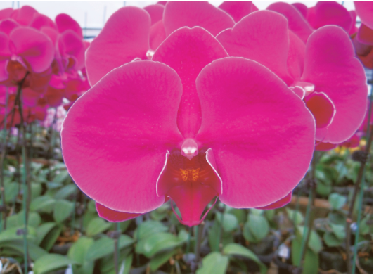 1、滴彩蝴蝶兰在广州的气候条件下,夏季用水帘和风机进行降温,冬季用加温机进行保暖,植株才能正常生长和发育。幼苗(分生苗)出瓶种植于1.5寸杯,4-5个月后,株幅达12cm左右,进行第1次换盆,并用2.5寸杯种植;再过4-5个月后,株幅达18cm以上,用3.5寸杯换盆种植;又经6-7个月的栽培管理进入成苗,可进行促成栽培。平地温室中栽培,4-10月为营养生长期,11月中旬抽出花芽,进入生殖生长期,1月中旬现蕾,2月下旬始花,3-4月为盛花期,5-6月为谢花期。