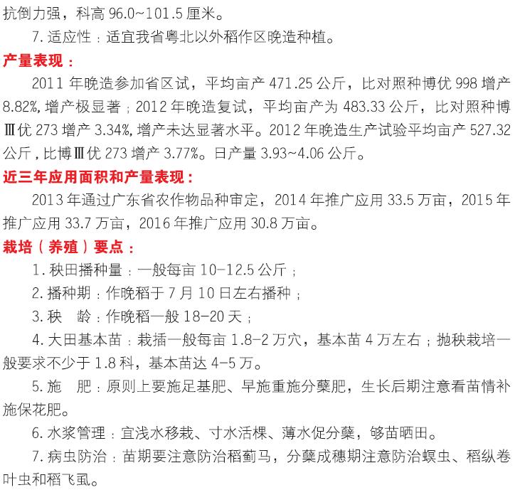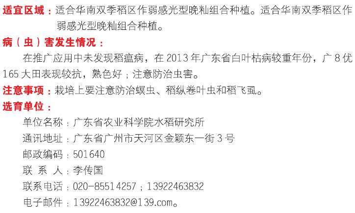 2018年农业主导品种:广8优165