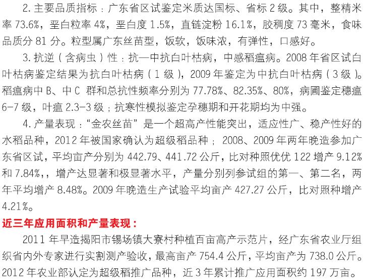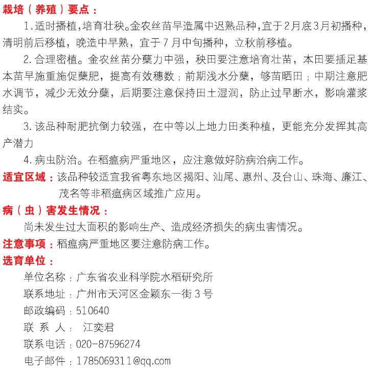 2018年农业主导品种:金农丝苗
