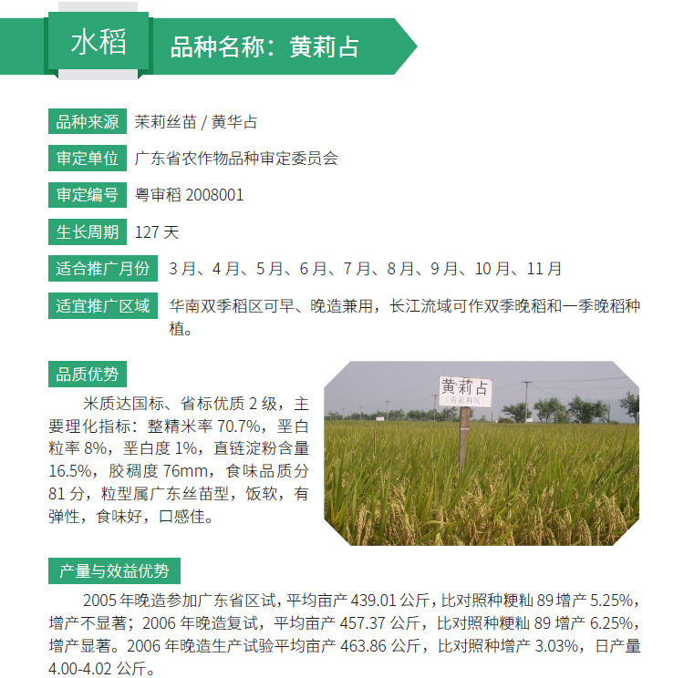 2019年农业主导品种:黄莉占