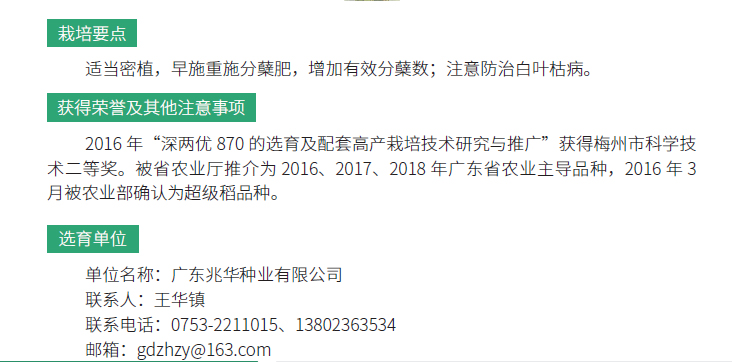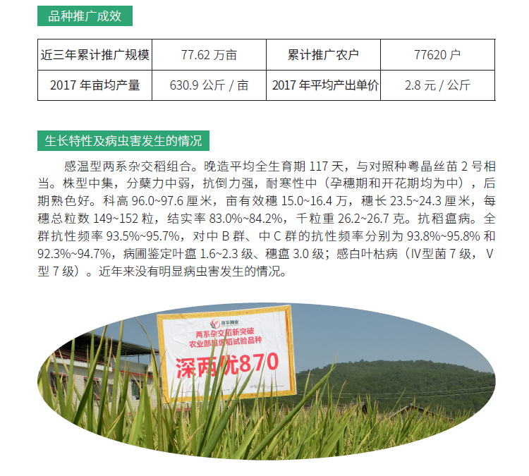 2019年农业主导品种:深两优870