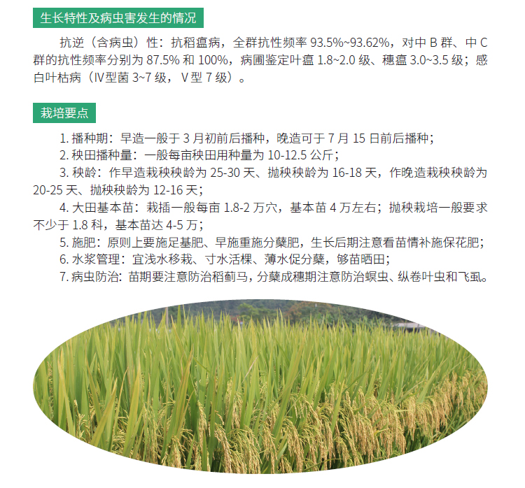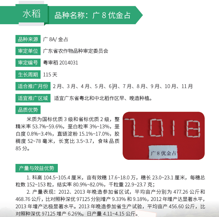 2019年农业主导品种:广8优金占