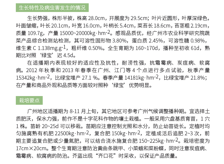 2019年农业主导品种:秋绿芥蓝