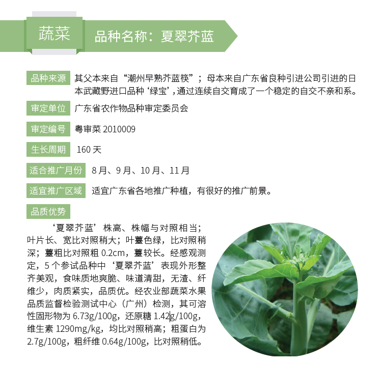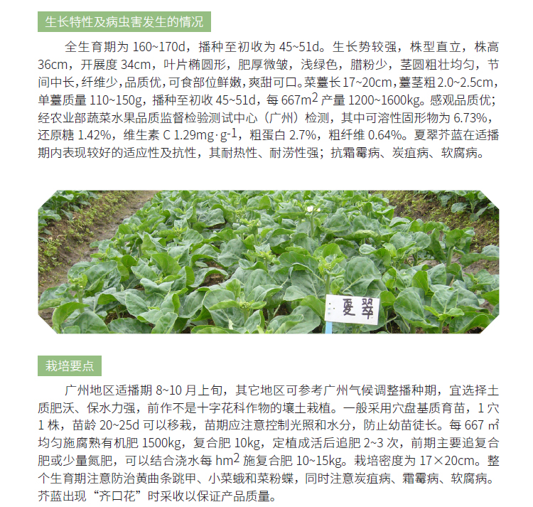 2019年农业主导品种:夏翠芥蓝