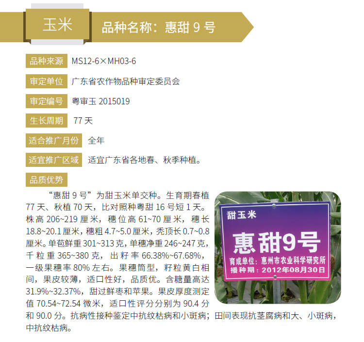 2019年农业主导品种:惠甜9号
