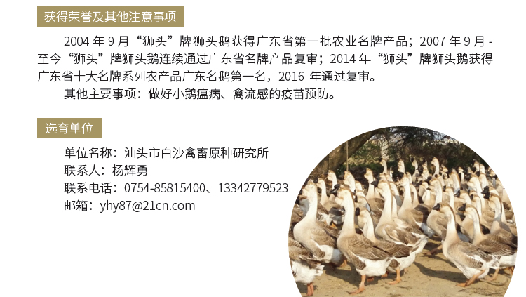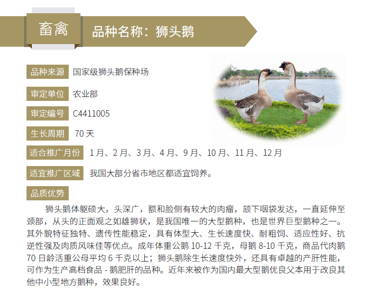 2019年农业主导品种:狮头鹅