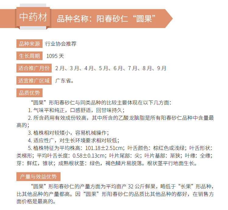 2019年农业主导品种:阳春砂仁“圆果”