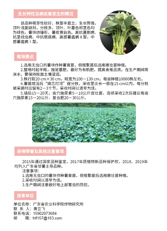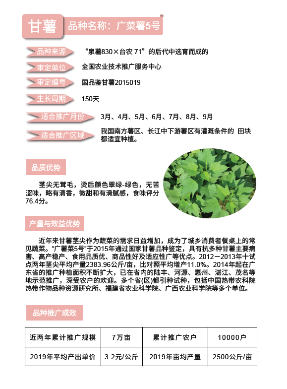 2020年农业主导品种:广菜薯5号