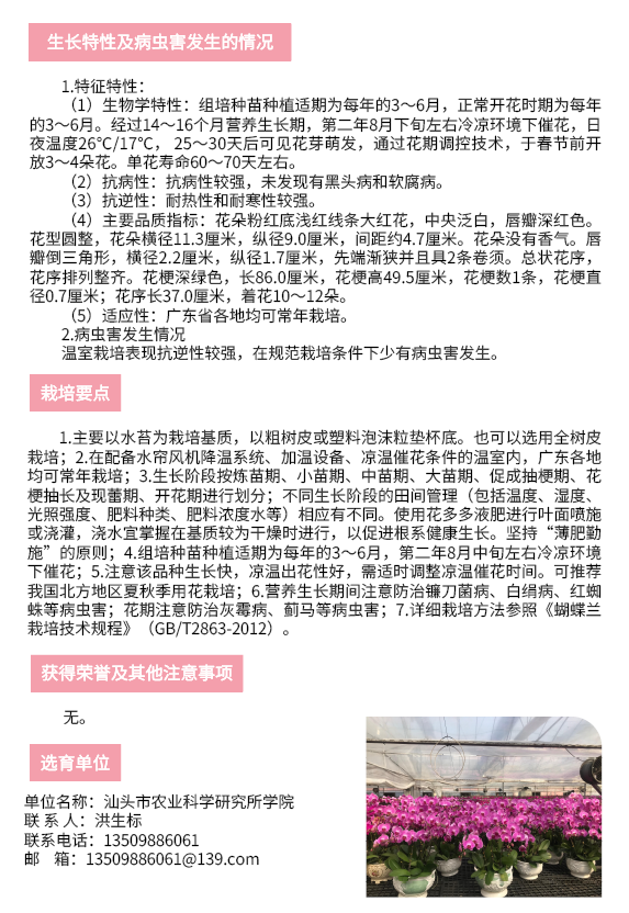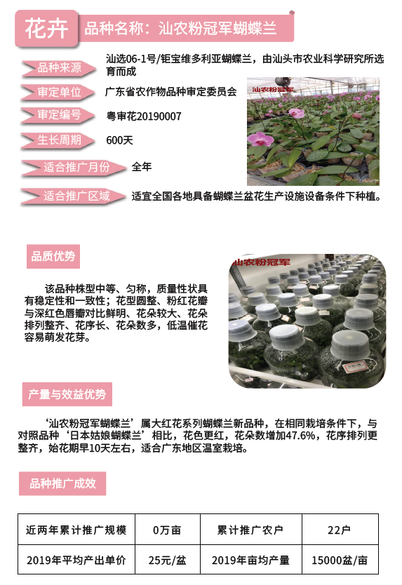 2020年农业主导品种:汕农粉冠军蝴蝶兰