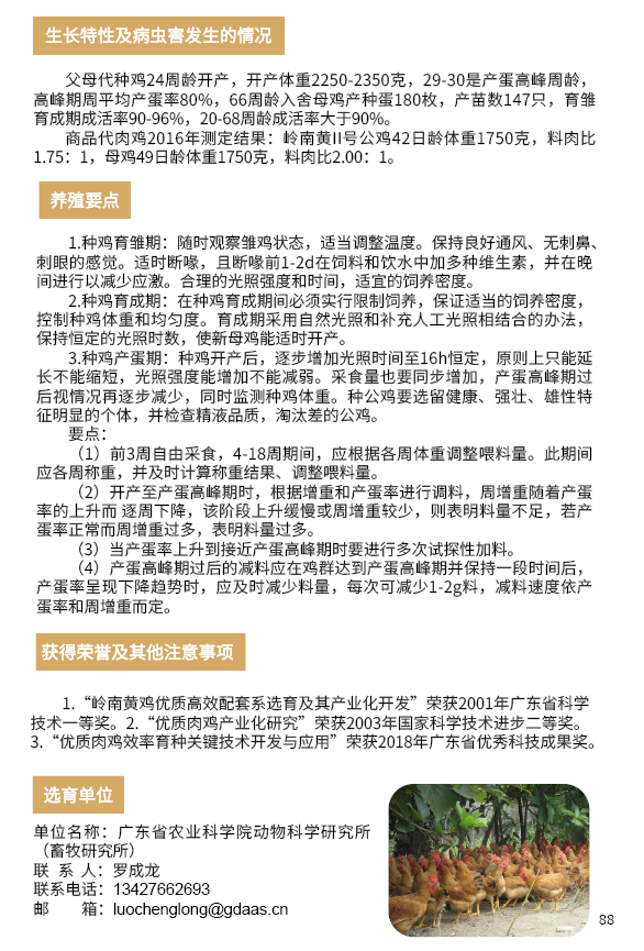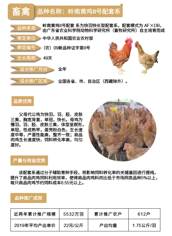 2020年农业主导品种:岭南黄鸡II号配套系