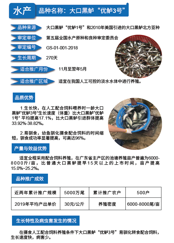2020年农业主导品种:大口黑鲈“优鲈3号”