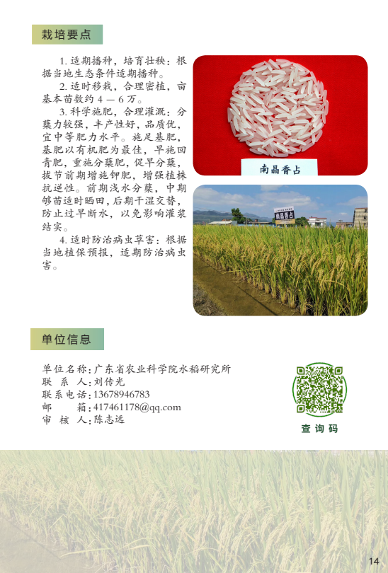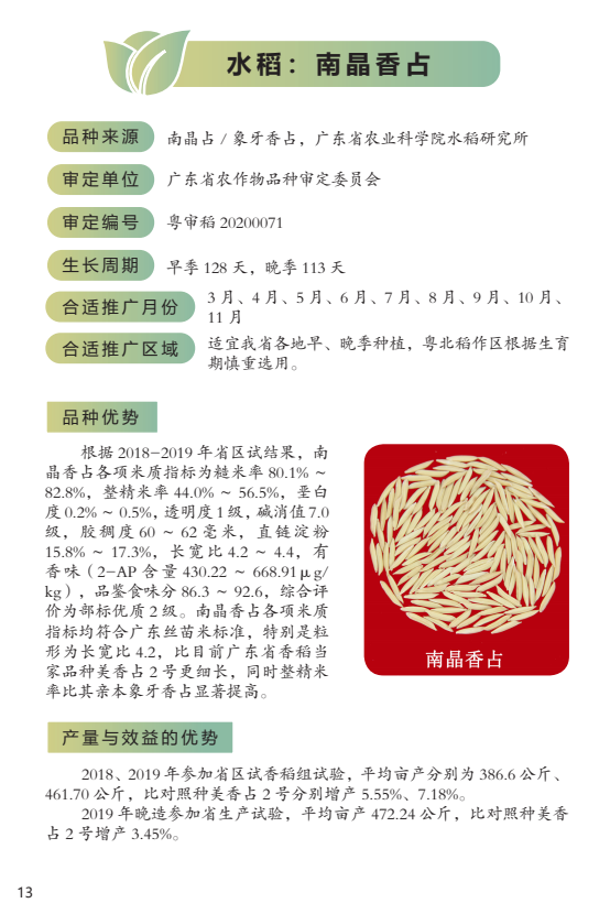 2022年农业主导品种:南晶香占