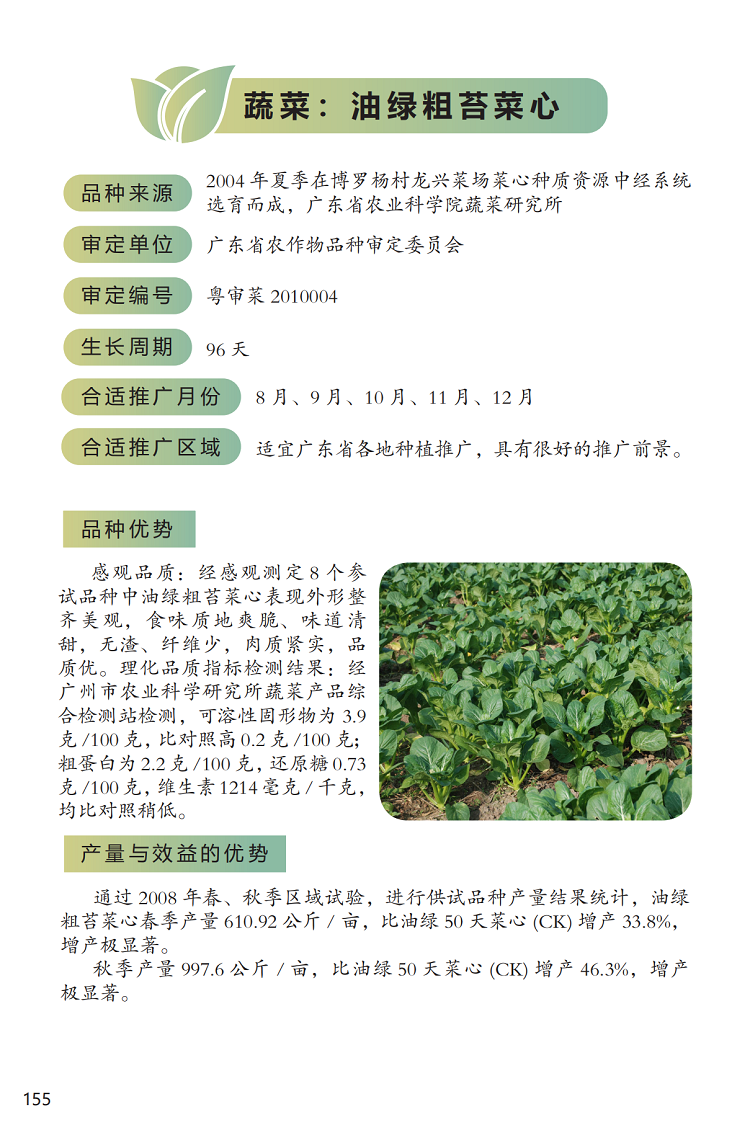 2022年农业主导品种:油绿粗苔菜心