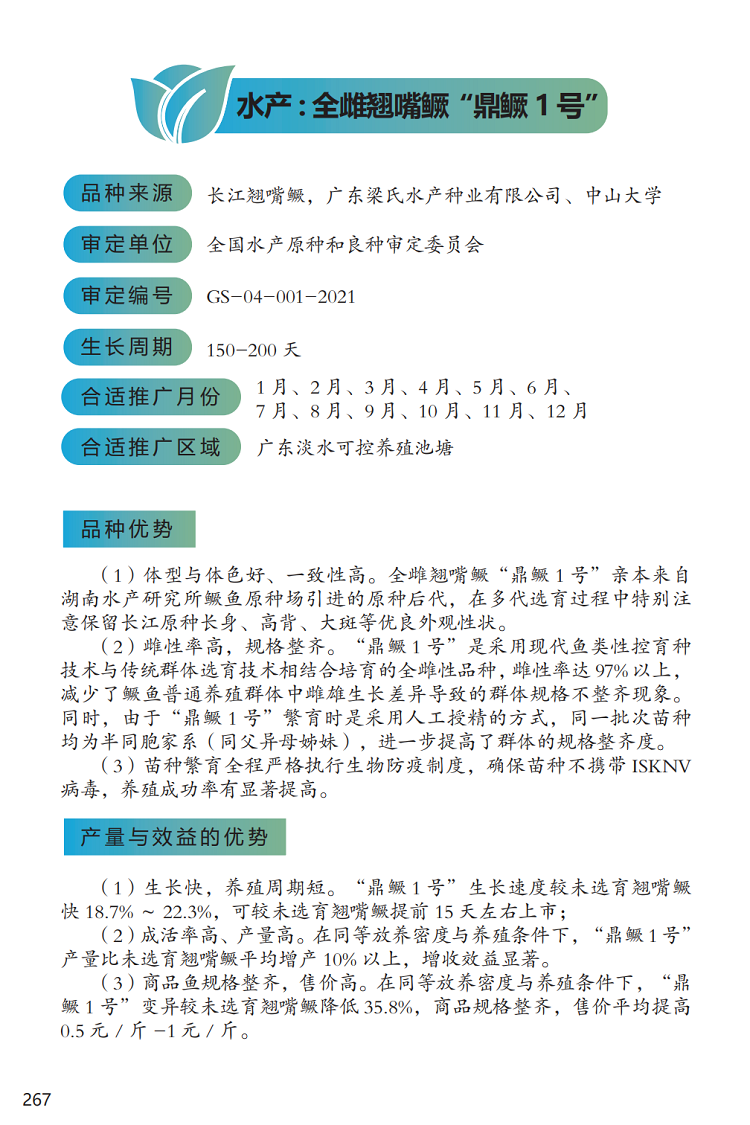 2022年农业主导品种:全雌翘嘴鳜“鼎鳜1号”