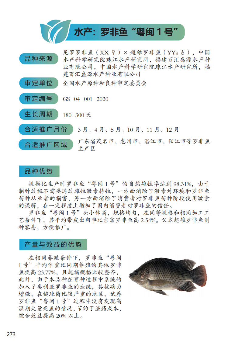 2022年农业主导品种:罗非鱼“粤闽1号”