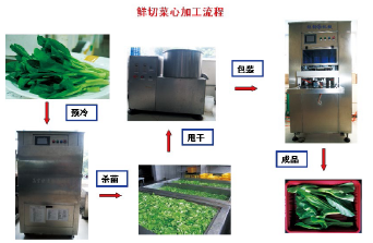 技术要点:1、选料:选择没有病斑、没有腐烂、没有机械损伤、新鲜的果蔬材料。2、预冷:针对不同的果蔬材料,选择不同的预冷终止温度。3、清洗:在自来水中清洗去表面的泥污,杂质等。4、切分:用锋利的不锈钢刀进行切分。根据不同的要求切成块状或条状。5、杀菌:在lOOppm 的次氯酸钠溶液浸泡10~15min杀菌。杀菌后用自来水清洗1 ~ 2次,以减少其表面的氯残留。6、保鲜处理:采用曲酸和柠檬酸等护色剂护色,用壳聚糖进行涂膜处理。达到保持原色、抑制呼吸的作用。7、沥干:沥干果蔬菜表面的水分,以防止微生物的滋生和蔬菜组织的软烂。采用甩干或鼓风的方式均可。8、包装: 沥干后,分装入包装袋,多采用气调或真空包装。9、冷藏: 将包装好的产品放在4℃冰箱中冷藏。